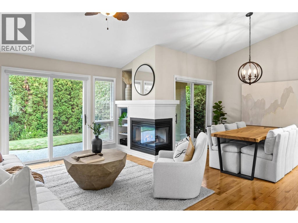 Light-filled and welcoming, this charming single-level home offers a blend of move-in comfort and opportunity for your personal touch. Located at 4140 Gallaghers Crossway. This 2-bedroom, 2-bathroom rancher provides just under 1,300 sq. ft. of thoughtfully designed, very functional living space in a sunny, quiet corner-lot location. A spacious courtyard entrance opens to a bright, airy interior with vaulted ceilings, skylights, and hardwood floors throughout the main living areas. The light filled living and dining room area features a perfectly situated fireplace. You will appreciate a brand-new well planned kitchen (2024) with sitting area and plenty of windows, while the large primary suite features a walk-in closet and ensuite. Updates include a roof (2020), furnace & hot water tank (2022), and fresh designer-neutral paint. The private backyard with mature landscaping is perfect for relaxing or entertaining. All set within the welcoming, very desirable Gallaghers community, this home is just steps from all of the Gallaghers amenities including; 2 Golf Courses, Restaurant, Tennis, Art Studio, Ceramics Studio, Wood Working Shop, Swimming Pool, Spa, Fitness Center. Abundant hiking and biking trails and an easy beautiful 15 minutes to downtown Kelowna. Priced to sell and available to move in immediately! (id:6289)