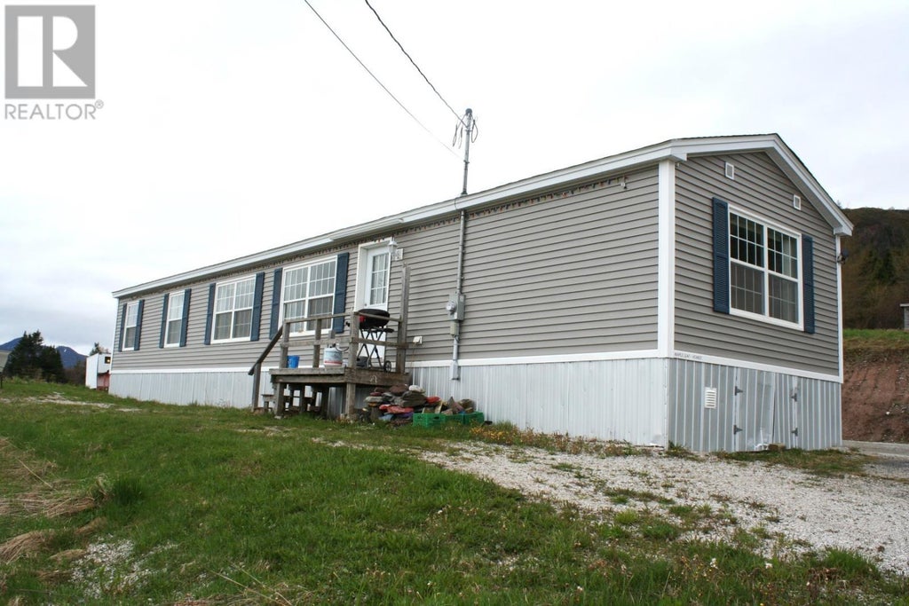 7 Gillams Rd, Woody Point is like a great view from the 'top of the world'. This 2017 mobile, situated on a 1.22 acre lot, features 3 bedrooms, open concept living room, dining room and kitchen. The main bedroom has a three piece ensuite and a four piece bathroom serves the other two bedrooms. Lots of windows to provide tons of natural light and the greatest, unobstructed view, from the LR/DR/KIT, of the Bay and the Mountains. The home is serviced with municipal water and sewer. The foundation is a series on 'factory stands' to support the home. The porch measures 15' X 11.4' and is great for storage. Also, for storage is 16' X 20' shed with a metal roof. The home has electric heat, with a 200 amp breaker service, and pex piping throughout. There is a fire pit in the corner front yard, a chicken pen on the end yard, and usually a moose in the large back yard. This location can be your headquarters for everything that's GROS MORNE NATIONAL PARK and Woody Point. From recreational pursuits to cultural events to quiet, peaceful, private living. Call to view. (id:6289)
