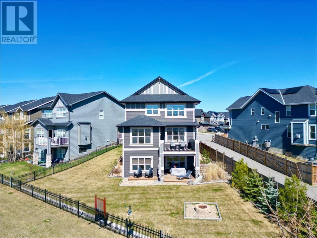 Nestled in the heart of Sunset Ridge, this exquisite home sits on an expansive 6,800 SQFT pie-shaped lot—one of the largest in the area—backing onto serene ponds and picturesque walking paths. Offering a rare blend of privacy and breathtaking scenery, this residence is a true sanctuary, boasting a southwest-facing backyard that captures mesmerizing mountain and sunset views. Upon arrival, the home’s stunning curb appeal is immediately apparent. Yet, it is the rear of the property that truly commands attention. Overlooking vast green spaces, tranquil ponds, and distant peaks, this residence stands apart with its spacious design and strategic placement, offering a level of independence rarely found in similar homes. Inside, elegance meets functionality with 9ft ceilings and numerous upgrades throughout the home. The chef’s kitchen, where a massive quartz-topped island with an eating bar serves as the perfect gathering spot. Stainless steel appliances, a gas cooktop, a generous pantry, and ceiling-height cabinetry elevate the space, while abundant natural light accentuates its sophisticated finishes. Adjacent to the kitchen, the bright and airy eating nook invites you to enjoy meals with a view. Large windows frame the sweeping landscape, and direct access to the back deck makes alfresco dining effortless. The inviting living room is equally captivating, with a stone-surround fireplace and wooden mantle providing warmth and charm. A 2pc powder room and access to the double attached garage complete this main level. Upstairs, the luxurious primary retreat is a masterpiece of comfort and tranquility. This private haven features sweeping mountain views, his-and-her walk-in closets, and a spa-like 5-piece ensuite with dual vanities, a soaking tub, an oversized shower, and a private water closet. Two additional bedrooms, a stylish 4-piece bathroom, an upper-level laundry room, and a versatile sitting area—ideal as a playroom or flex space—complete this thoughtfully designed floor. The fully finished lower level extends the home’s living space with a spacious family room offering walkout access to the lower patio. The massive backyard, a true rarity in the neighbourhood, provides ample space for outdoor entertainment, gardening, and relaxation, all while enjoying the spectacular natural surroundings. A generous additional bedroom, a sleek 3-piece bathroom, and a flexible office or bonus space ensure that this level meets all your family’s needs. Designed for year-round comfort, this home is equipped with air conditioning! Sunset Ridge is one of Cochrane’s most desirable communities, offering an unparalleled lifestyle with scenic pathways, parks, and close proximity to schools, shopping, and amenities. With its expansive lot, breathtaking vistas where you can watch your kids at the park, and meticulously designed interior, this property stands as a true gem in the community—offering an extraordinary blend of luxury, space, and serenity! (id:6289)