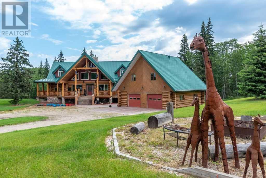 Dreaming of your own OASIS? Here’s a one-of-a-kind paradise of your own overlooking 160 acres of Pine trees, trails, crown lands and creeks. The craftmanship in this Log house is beyond your expectations and dreams. This 3-bedroom log house and four bathrooms and 3 bedrooms in the guest house. In the main house, you will be greeted with high ceilings living room and that country style feeling showing off your river rock fireplace, beautiful designed tile entry way c/w in-floor heating, and hardwood floors. The very spacious kitchen with an island, equipped with High end appliances (Elmira stove), a walk-in pantry, a mudroom and a 2 -piece bathroom. The very large dining room that can accommodate all your guest and family plus the breakfast area with access to the wrap around deck with spectacular view of the ravine. The upper level is just the best Master bedroom you ever have with two large walk-in closets for his and hers, master 6-piece ensuite with your raised bathtub with the towering trees view from the big window while relaxing and enjoying your me time, on the other side of the master bedroom you also have your own living room or office area that you can unwind and just watch your favorite TV show and another gas fireplace. In the basement it has a slab in floor heating so to keep your bare feet warm even in the winter time, and a large bedroom, 3 piece bathroom, a theatre room, best of the best it is equipped with an 85’ indoor archery range, laundry room with washer sink, furnace room, utility room equipped the best water softener, a walk out through the side of the house that you can sit and enjoy the outdoor and fresh air breeze overlooking the green space . The guest house has 3 bedrooms a kitchenette and the 2-boiler heated detached garage. Also, you have a 60’x45’ Quonset with work shop and a 35x28 insulated barn that currently houses donkeys. Moreover, all the bathroom sinks are imported from Mexico, the dining room set, and all the trophies has a s tory. This is a very private property that offers you a year-round adventures like hunting, hiking, quadding, and horseback riding and an investment opportunity to turn it into something recreational for the Winter and Summer. Also, the property has an oil well lease with a $2,900 revenue per year. This is very secluded, gated property and you have all the privacy! (id:6289)