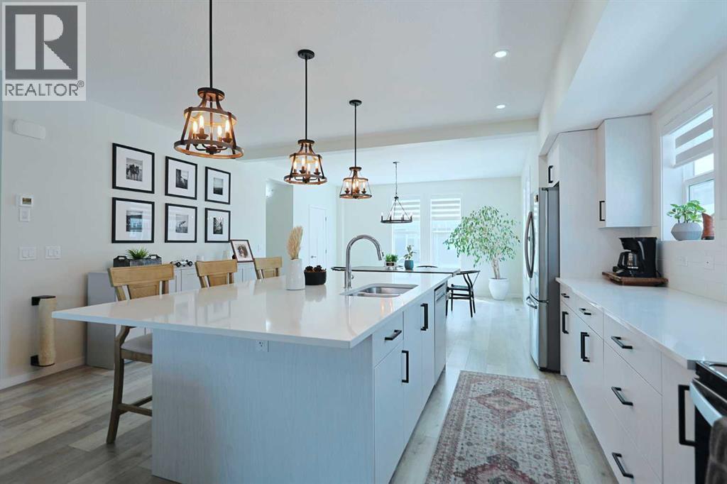 Your new home awaits here in this beautifully upgraded townhome in the popular SOUTH POINT SQUARE project from Vesta in the wonderful master-planned community of South Point. This gorgeous 3-storey end unit offers 4 bedrooms & 3.5 bathrooms, designer kitchen with quartz countertops, laminate floors & an attached 2 car garage for your exclusive use. Stunning open concept floorplan featuring the expansive living room with sleek electric fireplace & oversized balcony with views of the park, sun-drenched dining room with South-facing windows & fully-loaded kitchen with large centre island, quartz counters & subway tile backsplash, custom cabinetry & stainless steel appliances from Whirlpool & Samsung. Top floor boasts 3 great-sized bedrooms & 2 full bathrooms – highlighted by the South-facing primary bedroom with walk-in closet & ensuite with quartz-topped double vanities & walk-in shower. Between the bedrooms is another full bathroom with quartz counters & laundry with stacking LG washer & dryer. On the ground floor, there is another bedroom & bathroom with shower, & would also make a great home office, exercise room or another living room. Prime location in this Southwest Airdrie neighbourhood within walking distance to Northcott Primary School, stormwater pond with winding walking trails & the community park with playground, tennis courts, sports field & gazebo. Quick & easy access to 40th Avenue means to the West, Cooper’s Town Promenade is just a hop, skip & away…with its open-air stage & firepit, restaurants, offices & wide variety of shopping (anchored by Save-On-Foods & Shopper’s Drug Mart). And to the East is all the shopping, restaurants & services at the Sierra Springs Shopping Centre & QE2 to take you South to Cross Iron Mills, Calgary & beyond! (id:6289)