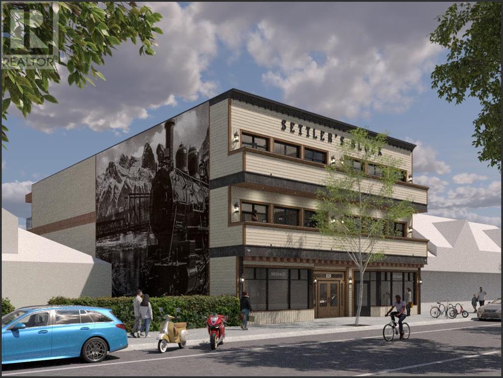 Welcome to Settler's Block. Canmore's only luxury steel and concrete building on main street. This 2 bed 2 bath 2nd floor corner unit in the heart of downtown is finished to the highest standard with ceiling beams and mantles constructed from reclaimed wood from the Canmore Engine bridge, hardwood and tile flooring, high end finishings, Bertazzoni stainless steel appliances with gas range, infloor heat, A/C, and a private patio with gas hookup with breathtaking mountain views. Elevator access to the 2500 sq ft rooftop patio provides BBQ's and a seating area for entertaining, and an Infra red Sauna for relaxing and enjoying the 360 degree, panoramic views of Canmore. Only 2 units Left! (id:6289)