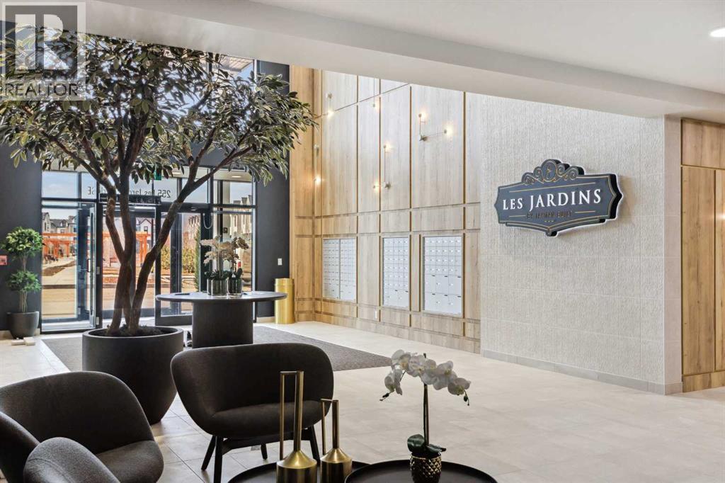 **BRAND NEW HOME ALERT** Great news for eligible First-Time Home Buyers – NO GST payable on this home! The Government of Canada is offering GST relief to help you get into your first home. Save $$$$$ in tax savings on your new home purchase. Eligibility restrictions apply. For more details, visit a Jayman show home or discuss with your friendly REALTOR®. LOVE YOUR LIFESTYLE! Les Jardins by Jayman BUILT next to Quarry Park. Inspired by the grand gardens of France, you will appreciate the lush central garden of Les Jardins. Escape here to connect with Nature while you savor the colorful blooms and vegetation in this gorgeous space. Ideally situated within steps of Quarry Park, you will be more than impressed. Welcome home to 70,000 square feet of community gardens, a proposed Fitness Centre, a Dedicated dog park for your fur baby, and an outstanding OPEN FLOOR PLAN with unbelievable CORE PERFORMANCE. You are invited into a thoughtfully planned 2 Bedroom, 2 Full Bath TOP FLOOR CORNER UNIT plus expansive balcony beautiful CORNER Condo boasting QUARTZ COUNTERS through out, sleek STAINLESS STEEL KITCHENAID APPLIANCES featuring a refrigerator with French doors with built-in water and ice, dishwasher with stainless steel interior, slide in stainless steel electric convection range with ceramic cooktop, built-in microwave and designer hood fan. Luxury Vinyl Plank Flooring, High End Fixtures, Smart Home Technology, A/C and your very own in suite WASHER AND DRYER. This beautiful suite offers a spacious dining/living area with sliding doors and large bright windows, a spacious entry corridor with two storage closets, an expansive balcony, a galley kitchen design with an extended eating bar, and side-by-side laundry. STANDARD INCLUSIONS: Solar panels to power common spaces, smart home technology, air conditioning, state-of-the-art fitness center, high-end interior finishings, ample visitor parking, luxurious hallway design, forced air heating and cooling, and window coverings i n bedrooms. Offering a lifestyle of easy maintenance where the exterior beauty matches the interior beauty with seamless transition. Les Jardins features central gardens, a walkable lifestyle, maintenance-free living, nature nearby, quick and convenient access, smart and sustainable, fitness at your fingertips, and quick access to Deerfoot Trail and Glenmore Trail. It is located 20 minutes from downtown, minutes from the Bow River and pathway system, and within walking distance to shopping, dining, and amenities. Schedule your appointment today! (id:6289)