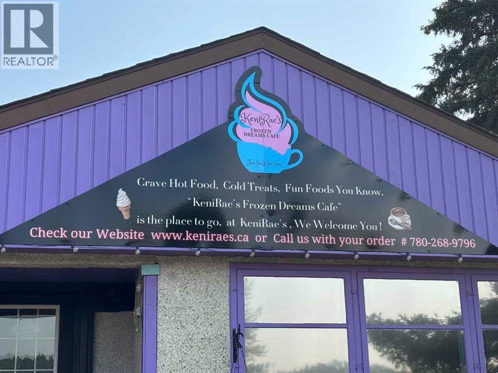 " LOCK ,STOCK AND BARREL - EVERYTHING STAYS !!". This commercial building with basement, double heated garage , business and everything to operate your business will be staying - only thing missing is the new owner/operator. Currently operating as KeniRae's Frozen Dreams Cafe, this visually creative eclectic diner offers a wide variety of food and drink options. Whether it be take out or in house dining, quick ice cream treats or sit down meals. This turnkey operation has flourished since its opening and offers a great opportunity to run your own business without high lease payments. All contents will be staying , including supplies and inventory. There are display coolers, soft ice cream machine, slushy machine ,hot display cooler, freezer display cooler, ice maker, commercial coolers, cold table, fridges, freezers, cappuccino machine, grill, air fryer, and the list goes on. Located downtown on 2 city lots, this vibrant cafe operates in a 1176 sq.ft. commercially zoned converted former residence with basement, and also has a 22'x24' heated detached garage , which is great for storage. Building, garage, 2 lots , business and inventory all included!! (id:6289)