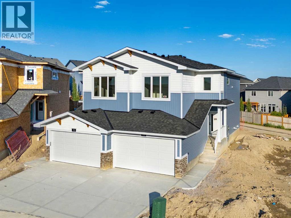 BACK LANE ACCESS & EXTRA LARGE LOT! Discover unparalleled modern living in this stunning, never-lived-in duplex, perfectly situated in Cochrane's prestigious and family-friendly Heritage Hills neighborhood. Offering 1742 sq ft of bright, open-concept design, high-end finishes, and incredible future potential, this home is ready for you to move in and customize your dream. Step Inside Your Dream Home. A welcoming foyer leads into a breathtaking open layout designed for effortless living and entertaining. Gourmet Kitchen is the heart of the home features sleek countertops, premium appliances, and ample storage – a chef's delight opening seamlessly to dining and living areas. Expansive windows throughout bathe the main floor in sunshine, highlighting the modern aesthetic and creating a warm, inviting atmosphere. The upper level features 3 bedrooms and a huge bonus room. The Luxurious Master bedroom boasting breathtaking mountain views, a 4-piece ensuite bathroom, and a generous walk-in closet. The additional 2 bedrooms are spacious and bright. A well-appointed 4-piece main bathroom serves the additional bedrooms. Dedicated upper-floor laundry room adds everyday convenience. That's not all, Attached front drive Double Garage provides shelter and secure parking. Huge opportunity awaits below! The unfinished basement features a separate entry. Awaiting your personal touches and vision! Imagine the possibilities. The back lane access and large lot is extremely unique and no other lots has them both, can park your toys such as trailer, motor home, boat, etc. Heritage Hills offers peace, beautiful surroundings, and a welcoming community – ideal for families. Positioned with the majestic Rockies as your backdrop and easy access to Canmore, Banff, and Lake Louise. Cochrane is transforming into a major tourist destination, backed by significant town and provincial investment. Enjoy tranquility in Heritage Hill while benefiting from nearby growth. Approved Horse Creek Sports Pa rk nearby promises even more recreation including High School. The potential here is truly amazing! Be the first to call this pristine property home. Everything is fresh and modern. (id:6289)