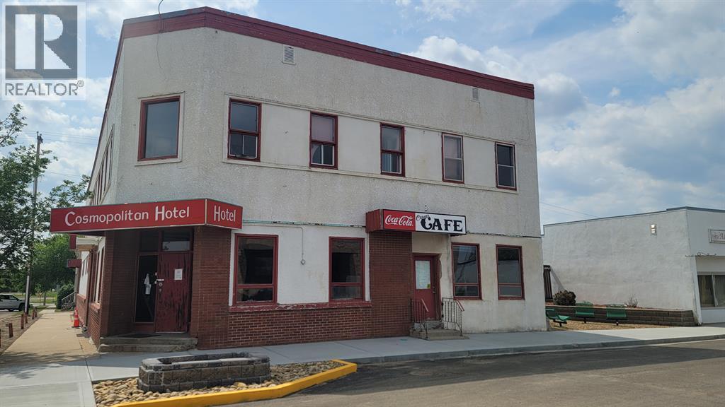 Formerly known as The Cosmopolitan Hotel, a local watering hole and eating establishment, has been a main structure throughout the history of Castor. It is sitting on the corner of what locals call Main St(really an avenue) - Grande Avenue and the tree lined boulevard ( Beaver ST). It has provided over the 100 plus years of housing, entertainment and meals for the many patrons that have visited or stayed in the hotel. This structure will need a good number of trades people to bring it back to its former glory when it was built in 1910. People have traveled from afar to take part in the local atmosphere of the tavern and restaurant with the local "East wall gang" telling their stories to the visitors, eager to listen to them, some true, some embellished or just some made up. With the time and passing of all of the "East wall gang", there left a void in the local community as there were no more stories being told and there was no place to seek advice, as most of the gang held their consulting offices in the tavern. Lets try to not see a landmark go to ruins and think about investing today. (id:6289)