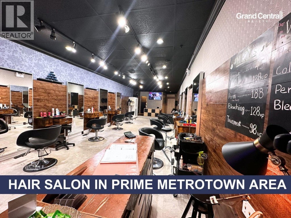 *Showing by appointment only, do not disturb staff. * Established Hair Salon in Prime Metrotown Area! Excellent opportunity to own a well-established hair salon located right on Kingsway, directly across from Metrotown, one of Burnaby's most vibrant and high-traffic commercial corridors. This prime location has been continuously operated as a hair salon for over 20'30 years, with different brand names over time but always maintaining a loyal clientele and strong reputation. The salon currently holds an impressive 4.7-star Google rating, reflecting its consistent service quality and customer satisfaction. The salon is fully equipped with 8 styling stations, 3 wash stations, and 125-amp electrical service, making it completely turn-key for the next owner. Enjoy designated parking providing convenience for both customers and staff. The rent is fair and below market. Perfect for experienced stylists or entrepreneurs looking to own a profitable business. Please contact the listing agent for more information! (id:6289)
