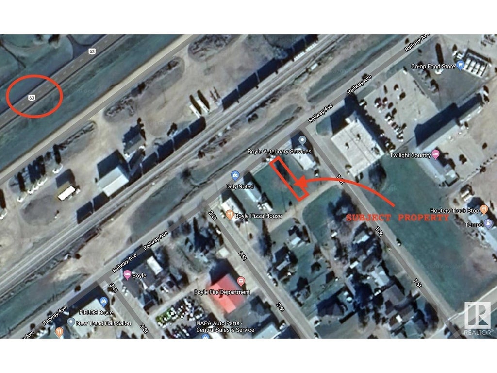 LOWEST PRICE FOR A COMMERCIAL LOT IN BOYLE! Don't miss out on this opportunity to build your dream business with exposure to HWY 63 and Railway ave in Boyle. Half way between Edmonton and Fort McMurray you could tap into the massive amount of traffic that runs on the highway daily! Exposure is key and some well established businesses are near by including the Co-op grocery store, the Boyle Vet, and the Pizza House! Municipal services are available to this lot. (id:6289)