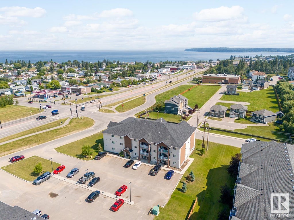 Perfect for investors or first-time homebuyers! This bright, modern condo features 2 bedrooms, 1 bathroom, and a spacious open-concept living area. It also includes two outdoor parking spots with plug Ins. Laminate flooring throughout, the kitchen offers plenty of storage, ample counter space, and a large island for cooking or entertaining. Enjoy the convenience of in-suite laundry with a washer and dryer, and extra storage space. This unit is equipped with air conditioning and a nice balcony to enjoy. Situated in Cold Lake North, this property is just a short walk to the marina/lake and local shops, and restaurants. The building is secured with a buzz-in system and features a conference room & storage room. Condo fees cover essential services, including heating, water, landscaping, snow removal, exterior maintenance, reserve fund, and professional management..maintenance free living--move in ready! (id:6289)