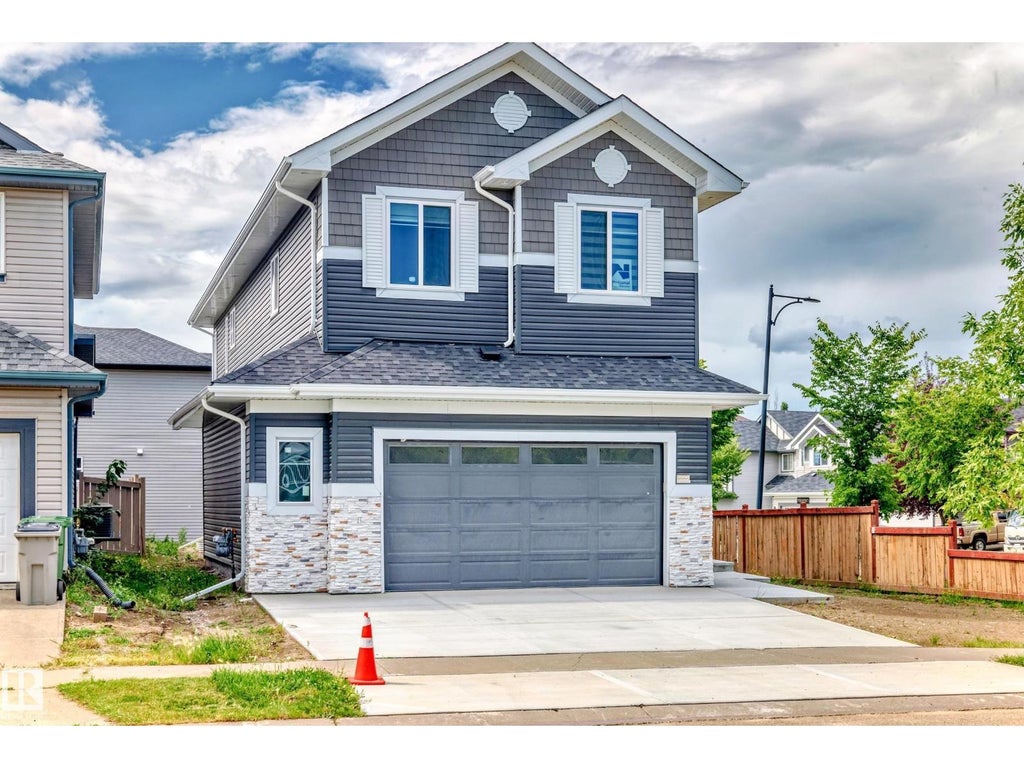 Welcome to this thoughtfully designed, custom-built home that is sure to exceed your expectations in design, functionality, and craftsmanship. Situated on a spacious regular corner lot, this property offers an abundance of outdoor space and additional windows on both sides, filling the home with natural light — a rare find in Beaumont! This home features: 4 bedrooms & 2.5 bathrooms A spice kitchen plus an extended main kitchen A stunning open-to-above living room Side entrance to an unfinished basement, offering potential for future development with three windows in the basement. A full-width deck at the back, perfect for summer gatherings Upstairs you’ll find a bonus room with a bar — an ideal spot for movie nights or entertaining. The luxurious primary bedroom includes a 5-piece ensuite, complemented by 3 additional bedrooms, a shared bathroom, and a convenient upper-level laundry room. Additional highlights include an oversized garage with a drain, man door, and extra storage space. (id:6289)