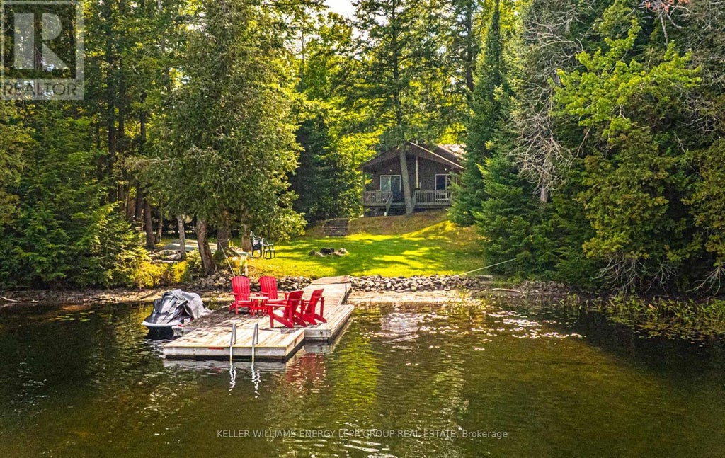 Beautifully renovated and well-maintained four season 3-bedroom bungalow with oversized garage and Bunkie, set on a private 1.62-acre lot with approximately 123 feet of water frontage on the quiet bay of Wollaston Lake. Featuring an open concept kitchen, dining room, and sunken family room framed by soaring cathedral wood-plank ceilings and a wood-burning stove. Two sliding doors fill the space with natural light and open onto a deck with breathtaking lake views. This waterfront retreat offers over $120,000 in recent upgrades, including a renovated kitchen with quartz counters, stylish backsplash, and centre island (2022), updated bathroom (2022), new broadloom (2022), crawl space insulation (2022), and septic cleaning (2022). Additional features include a 200-amp electric panel, propane/gas stove, furnace (2019), new air conditioner (2022), and new shingles (2023). Enjoy 123 feet of private shoreline where you can swim, fish, canoe, or paddleboard, or explore 6.5 km of pristine lake. With direct access to ATV and snowmobile trails, plus nearby hunting grounds, this property is a true year-round recreational retreat. In 2025, $20,000 was invested in wood restoration, sandblasting, and staining of the exterior cottage (id:6289)