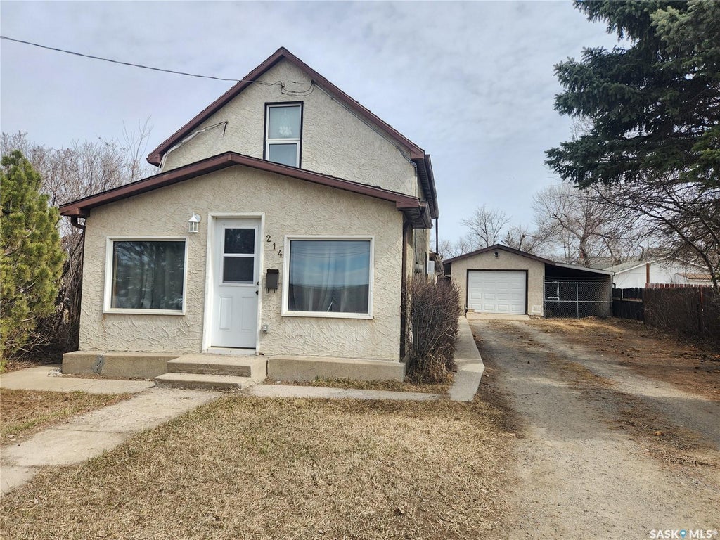 Welcome to 214 Government Road, Weyburn SK. This is a great home for a first time home Buyer or to get into the market for someone looking to expand their rental portfolio. The kitchen is huge with tons of cabinet and counter top space and has a nice sized entrance leading to the private backyard. Main floor bathroom is a full 4 piece bath, laundry is also conveniently located on the main floor. Living room and sunroom offer a lot of extra living space, with the bedrooms and a half bath on the second floor. Out back you are spoiled with a double long garage and carport to take care of all your parking needs and give you somewhere to work on projects. Fridge, stove, washer, dryer, dishwasher, window air conditioner included! Call for a tour today!