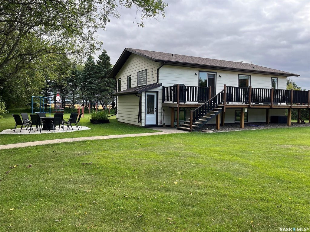 Beautiful Acreage located between Spalding and Annaheim. Nestled within a beautifully treed 10 acre property, this charming acreage offers the perfect blend of comfort and tranquility. Built in 1982, the 1134 square foot home is thoughtfully designed, featuring a primary bedroom and a 4 piece bathroom on the main floor, providing ease of living. The main floor also includes a versatile office, a spacious living room, a generous dining area and a large kitchen equipped with a large island, ample storage space and newer stainless steel appliances. A convenient mudroom/laundry area adds to the home's functionality. Descend to the recently renovated basement completed in 2020, and discover three additional bedrooms, another 4 piece bathroom, a sprawling family room perfect for gatherings, and a separate back door entrance with a mudroom. The basement also offers plenty of storage options, ensuring everything has its place. The outdoor amenities are just as impressive. A wrap-around deck invites you to enjoy the serene surroundings, while the yard features a metal 8-piece playground, concrete firepit area with seating for 10, an inground swimming pool for those warm summer days, and a volleyball net for fun with family and friends. The home is heated with an efficient electric boiler with in-floor heating, ensuring comfort throughout the year. This property combines the best of rural living with modern conveniences, making it an ideal retreat for those seeking a peaceful lifestyle. Located 9 miles from Annaheim, 7 miles from Spalding and 40 minutes from Humboldt, this is an amazing space to raise a family or enjoy quiet times. Call your Realtor® to view today!