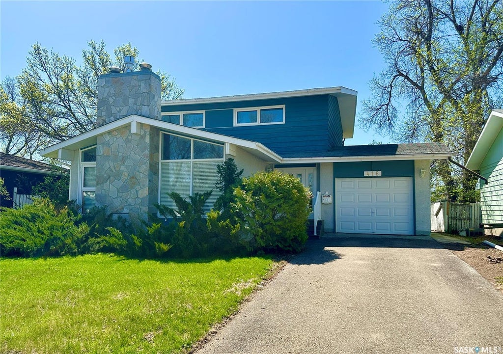 Welcome to 416 3rd Avenue NW, a rare opportunity to own a mid-century modern gem in one of Weyburn’s most desirable locations. Nestled on a picturesque, tree-lined street, this 1736 sq ft two-story home showcases timeless architecture, character, and incredible potential. Step inside to a bright and inviting front living room, where soaring vaulted ceilings, expansive windows, and a cozy gas fireplace create a perfect space for relaxing or entertaining. Hardwood flooring flows seamlessly throughout the main level, adding warmth and style to the home. Upstairs, you'll find four bedrooms, providing ample space for family living, guest rooms, or home office setups. The second floor also offers a functional 5-piece main bathroom and a convenient ensuite in the primary bedroom. The fully developed basement extends your living space and features a charming wood-burning fireplace, creating a rustic and atmospheric setting ideal for movie nights or quiet evenings in. Outside, the large, partially fenced backyard is designed for outdoor enjoyment, complete with an expansive concrete patio perfect for gatherings or summer barbecues. The yard offers privacy and a peaceful, park-like feel. Located within walking distance to schools, parks, and a full track facility, this home delivers an unbeatable blend of lifestyle, location, and future potential. Whether you're looking to move in and make it your own or take advantage of its untapped possibilities, this property is full of opportunity.