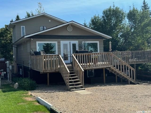 Stunning views of Jackfish Lake from this spectacular hilltop 4 season property on a TITLED LOT! Located in Bayview Heights adjacent to the Battlefords Provincial Park, this home is on a titled lot and is host to 3 bedrooms, 3 bathrooms, 3 gas fireplaces, a total of 2,304 sq feet, a stunning modern kitchen featuring high end appliances and a very large island that seats 6 comfortably (11 feet of Quartz countertop), 3 sets of garden doors each leading to private deck areas, and the lower level featuring a walk out basement. A large addition was completed in 2014 that allowed for a top story loft-style master bedroom with 4 piece ensuite and private deck, kitchen and living area expansion, a show-stopper dining area with unobstructed views overlooking Jackfish Lake, and a lower level home office/den with in floor heat. The 2014 renovation also included triple pane windows, completely new kitchen, flooring (commercial grade vinyl plank in kitchen, dining room and living room), fireplaces, decking and shingles (shingles on original home done in 2012 with shingles on the addition done in 2014). Extras include 5 burner gas range, natural gas BBQ hookup, water softener, main floor laundry, 2 exits on ground level (one leading to back yard and one leading to parking under the carport) and year round potable water supplied by the organized Hamlet of Bayview Heights. Lots of off street parking, allowing for 5 vehicles to easily park on the property. The septic is a 1,500 gal tank. The zero-scaped yard features gravel, fence and carport area under the deck. The large L-shaped main deck allows ample room for entertaining with perfect views of the lake from every corner. Located close by is a public sand beach, boat launch, golf course, mini golf and store. The land directly across from the property is public reserve ensuring that no one will build in front to obstruct the view. Another great perk - you can drive your golf cart to the golf course!