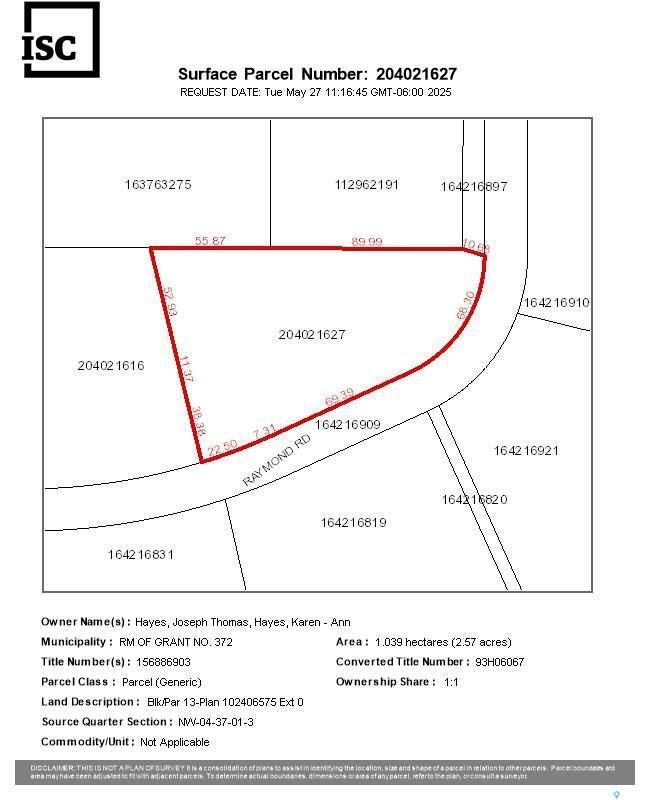 Great Building lot in the Rm of Grant. Build your dream home here. Owner states power and gas are beside the road and water runs under the property. Come and join this great community! This property will not last. Call today.