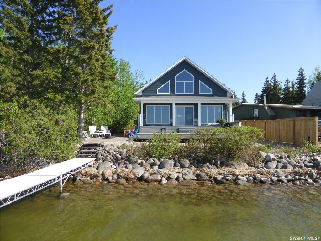 Have you ever imagined looking out your picture windows, and seeing nothing but water and a view to die for? 620 Kenderdine Blvd on the beautiful Sunset View Beach at Turtle Lake, Sk, is exactly what you would have visioned! This 2016 Built home was built with forever in mind, but luckily for you, plans have changed and it is up for sale. Within 1596 sq ft of living space you enter the covered 6’x 15 composite deck leading you into a large foyer. Just off the Foyer is a spacious laundry center with plenty of space. The master bedroom, with large organizer closets, is directly across from a 3-piece bath, with heated tile floors, quartz double sinks and a large custom-made shower. Then you enter the open concept kitchen/dining and living room with vaulted ceilings reaching just over 19 feet to the peak. The triple pane windows, encompass the full front of the cabin, along with full vision rake windows above. The décor, the colours, the flooring, are all so coordinated that you would swear they are the work of a professional designer. Beachy, is the tone, Relax is the feel. The kitchen is high-end stainless-steel appliances; the cupboards and island are functional. The living room boasts a natural gas fireplace with a live edge mantel. Upstairs the dream continues, as the view from there is all lake. The home was professionally built and was done with detail and maintenance free in mind. From the hardy plank siding, long life asphalt shingles, to the ICF basement where extra storage is available. Outside is a two tier composite deck, with the first tier of 7’ onto the bottom tier of 16’ more. Down from that is the firepit, with concrete patio stones that imitate the warm effect of real wood blocking that will accommodate a large crew at the fire. From there you move down the same patio stones to the dock and a swim platform. Did we mention that the lot to the North is a treed public reserve area. The other side of the lot has a full wood privacy fence.