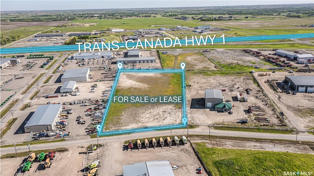 FOR SALE OR LEASE of approximately 5 acres of prime commercial/industrial land, fully fenced with adjacent property and gated; located in the Great Plains Industrial Park in Emerald Park, SK. This property can be bought or leased with adjacent property to the north (4 South Plains) for a total size of 10 acres. Ideal for any user or investor seeking high visibility and great access. Build or invest, with many successful businesses and amenities nearby!