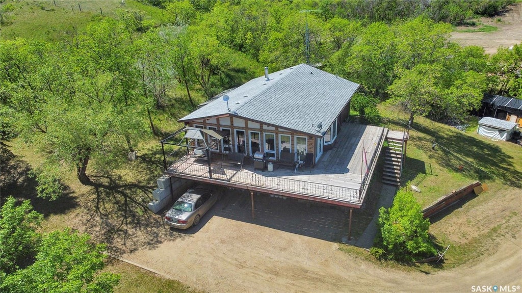 Discover 4 Season Lake Living in the beautiful Resort Village of Sun Valley at Buffalo Pound Lake. Nestled on a large lot approx. 27,870sqft (.65 acres) of land with WALKOUT Bungalow styled home w/ Dbl. Att. Heated Garage, a Single Det. Garage & tons of parking for your toys like your Boat & RV. Welcomed & leaded to the main house, you are greeted into the main living space, set in an Open Concept design w/vaulted ceiling, sun tunnels & floor to ceiling updated windows creating an airy & expansive feel. The Living Room features a wood stove w/Tindal stone hearth as a focal point & the open kitchen, enjoys solid oak cabinetry, large U-shaped centre island allowing for an abundance of cooking workspace, & storage. This is the perfect entertaining home as there is a patio door to the massive WRAP Around Deck too! This floor comes complete w/2 Bedrooms & a 4pc. Bath w/full tub surround. Oh, and did we mention there is a lift to take you from main to lower level? Perfect for accessibility & any challenges. The lower level includes a Flex room currently used as a bedroom, which can be easily adapted to suite your needs, whether as a home office, workout room or craft space. There is a 3pc. Bath & laundry/storage area which simplify household chores & storage needs. The Dbl. Attached heated Garage is currently being used as a Rec Room. Updates include shingles, windows & furnace. This home has so much potential and with a bit of TLC & personal touches can be your peaceful year-round residence or a seasonal escape. Enjoy the natural beauty & recreational opportunities of Buffalo Pound Lake while relishing the spacious comfort of your own private, serene park like yard. Explore the possibilities at this unique property & discover how it can perfectly match your vision of ideal lake living. CLICK ON THE MULTI MEDIA LINK FOR A FULL VISUAL TOUR and ask your REALTOR® for additional information and come take a personal tour.