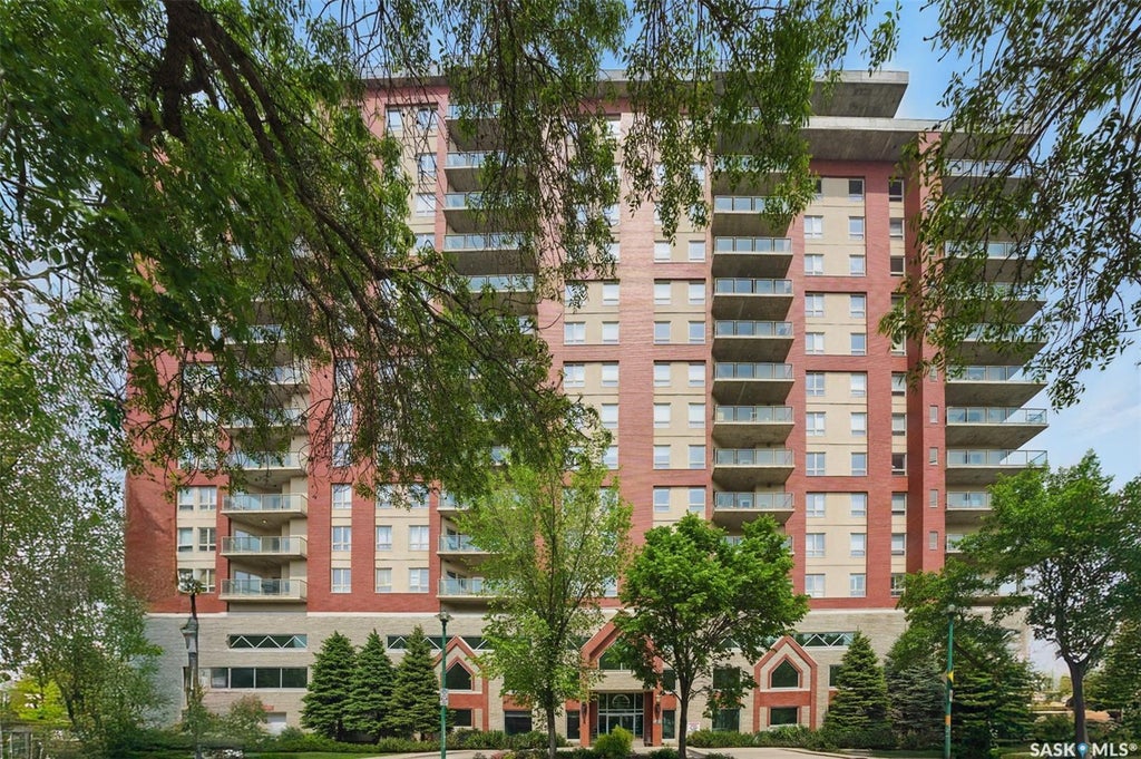 Welcome to the Riverfront! One the best locations in Saskatoon. This prestigious 10th floor condo has spectacular views of the river, Kinsmen Park, University Bridge, and the Children's Hospital. This move in ready 2 bed, 2bath suite, boasts maple shaker cabinets, island kitchen, open, bright living and dining rooms, huge master bedroom with walk-in closet, and en-suite bathroom. There's in-suite laundry, a spacious balcony with natural gas BBQ, central air, heated underground parking, and two storage lockers. The building offers extra perks such as exercise room with new equipment, pool table, meeting room, rentable guest suites, security cameras, and an on-site caretaker. Just steps from all the riverfront activities, downtown, and RUH. Condo fees include heat, insurance, water, sewer, garbage, and building maintenance. Newer fridge and microwave. Can remain fully furnished if desired. Don't miss this deal today!