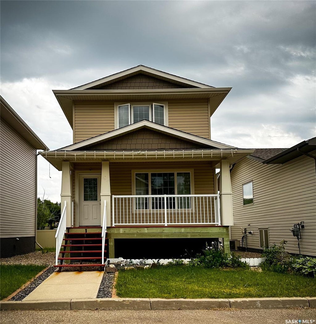 Welcome to your beautiful home in a great location! This home was built new in 2013 with 3 bedrooms and 1 ½ baths and over 1100 square feet! The yard is nicely landscaped and easy to maintain with a nice PVC partially fenced yard. The backyard is perfect for setting up your BBQ alongside a patio set to enjoy the warmer weather. Out front is my favorite part, there is a cute, covered deck that you can add your favorite chair and enjoy a coffee, rain or shine! Continue to add your touch with some cute décor or maybe some flower baskets! When you enter the home, you will be welcomed to a bright, modern and open concept main floor. Off the entrance, there is a nice size living room with a view of the dining room and the beautiful kitchen. Large windows allow for lots of natural light throughout! The kitchen has quality white cabinets and flows nicely and includes an large island and double sink with room for storage. Off the kitchen, you will find a ½ bathroom, a door to the backyard, more storage and the door to the basement. On the second floor, you will find a great-sized main bedroom with a walk-in closet and nice windows throughout. There are two other bedrooms and a full 4-piece bathroom for your family or other guests. In the dry basement, the drywall has been hung and ready to finish for a great rec room or additional bedrooms and bathroom. This home boasts an air exchanger, an RO system for your water, a efficiency furnace and a hot water tank. The electrical is neat and tidy with 100-amp service. If you are looking for a low maintenance modern home to live in or invest in as a rental, then take a look at this one. These houses were set up as a self-managed condo development with 2024 condo fees only $205.41 for the entire year. A modern home that is affordable with payments cheaper than most rent these days could be yours with a quick possession possible!