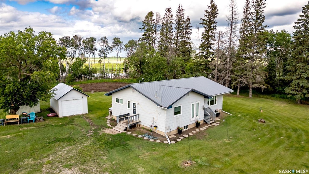 Home quarter for sale. This quarter is only 2 miles off the highway and a total of 18 miles from Melfort. The home is a 1980 bungalow with 3 bedrooms and 2 bathrooms spread over 1252 sqft. The home is heated and cooled with geothermal forced air and has newer flooring, newer windows and a tin roof. The sewer is a septic with pump out. There is a 180ft well that supplies water to the whole property. There are several outbuildings with 2 bars and a 2014 12x24 detached garage. The land is assessed at 154000 with a soil class of G. Sama states 112 cultivated acres but the owner claims there is 130.