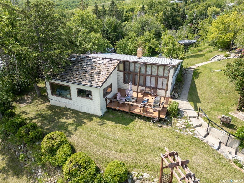 2 acres of LAKEFRONT on a hill overlooking Buffalo Pound Lake! 1870 square feet main (year round) house with a "Granny suite", artist studio, elevator (not currently working), two fireplaces (gas and wood), and three bathrooms. City water, natural gas, power, and phone! 1000 gallon septic tank, 200 amp electrical service, 2x 800 gallon cisterns. A few steps away is the 3 season guest cottage that was plumbed for lake water, but isn't used. This property is in the perfect location to create your perfect family retreat!