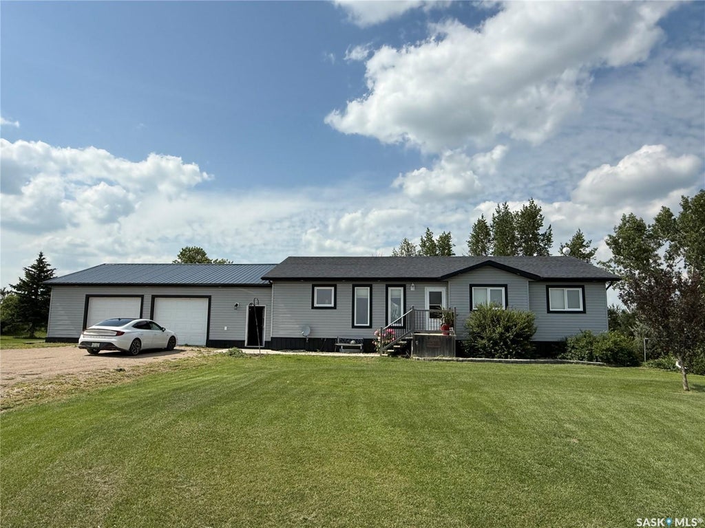NEWLY built Home ONLY 30 mins from Weyburn! If you are looking for a quiet place to call home that is only a short drive to city amenities than this Acreage is for you. It is located only 30 mins from Weyburn OR 45 mins from Regina. This home is just under 1800 square feet of living space on each level. If offers a mudroom that walks into a 2 piece bathroom/ laundry room. The mudroom opens up the the open concept kitchen/dining and living room. The kitchen has an abundance of cupboard space, island with additional seating and vaulted ceilings and walk in pantry. The dining room is grand and would be perfect to hold large family gatherings. The living room has patio doors to access the back deck. Down the hallway are 2 good size bedrooms, a 4 piece bathroom and primary suite. The primary suite is spacious and has a large walk in closet and 4 piece bathroom with soaker tub and tons of stoarge. The basement is huge. It's a perfect area for a game room & family room. There are 2 good size bedrooms and a 2 piece bathroom that has been prepped for a shower/bath tub. The one storage room could be used as a office. There is another large storage room and the utility room. The home also has a over sized 2 car garage that can easily fit more than 2 vehicles in it. The yard has mature landscaping with lots of tress and a great shelter belt. There is a garden area, play center and detached garage. You won't find a acreage like this on the market often. Don't miss out!