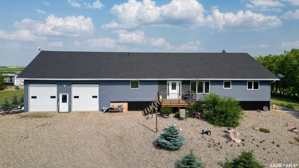 Welcome to Horvath Acreage — Where Space, Style, and Serenity Collide. Break free from city chaos and step into 25 acres of pure Saskatchewan countryside, just 15 minutes north of Southey off Hwy 6. At the heart of the property is a modern 2,400 sq. ft. bungalow with a sleek open-concept design. The main floor features a spacious living area, a chef-inspired kitchen with a massive sit-up island, quartz countertops, and custom maple cabinetry. You’ll also find a bright home office, convenient laundry room, two bedrooms, and a generously sized primary suite with a 4-piece ensuite and direct access to the back deck. The partially finished basement offers serious potential: a huge rec room/family space, roughed-in bathroom, 4th bedroom, and a layout ready for a wet bar or kitchenette — perfect for entertaining or multigenerational living. The 30’x40’ heated and insulated garage is ideal for storing toys or tackling big projects. Outside, enjoy two large decks, a sprawling yardsite with a firepit, a garden, and all the room you need for RVs, boats, or your dream outdoor setup. Want more? There’s a rented mobile home providing additional income, plus a shop and quonset for extra storage or business use. This is rural living — redefined. Private, peaceful, and packed with value. A recent appraisal came in above the asking price making this a smart choice for buyers who want a peaceful lifestyle or investment opportunity! Contact your real estate professional to book a private tour today.