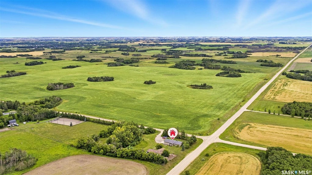 Welcome to this charming acreage less than 10 km south of Saskatoon, offering the perfect balance of privacy, space, and convenience. With only 2 km of grid road and the rest paved, you’ll enjoy an easy commute while embracing peaceful country living. Surrounded by mature trees, the property feels like a private park with plenty of room to garden, play, and relax. The bungalow features 4 bedrooms and 2 bathrooms, freshly updated with new flooring and paint throughout. The main floor offers a bright living room with a large front window, a sunny dining area, and a farmhouse-style kitchen with butcher block countertops, stainless steel appliances, and a walk-in pantry. The stunning main bathroom includes modern fixtures, custom shelving, and main floor laundry. A large den off the garage adds flexible space for a games room, office, or hobby area. The lower level includes a cozy family room, a large bedroom, 2-piece bath, and ample storage including a dedicated room for the cistern, connected to Dundurn water via drip system. Out back you will find an impressive 5,500 sq. ft. outbuilding, once used as a honey factory. While it does require some work and TLC, its sheer size offers incredible potential, especially since new structures of this scale aren’t permitted to be built on residential acreages today. Whether you envision it as a workshop, storage, or a future project space, it’s a rare and valuable feature. The yard is equally impressive, with mature trees and a hugelkultur garden designed for low-maintenance, high-yield harvests of fruits and vegetables. If you’ve been dreaming of country living close to the city, this property delivers—an updated home, unique outbuilding, treed yard, and unbeatable location, all just minutes from Saskatoon.