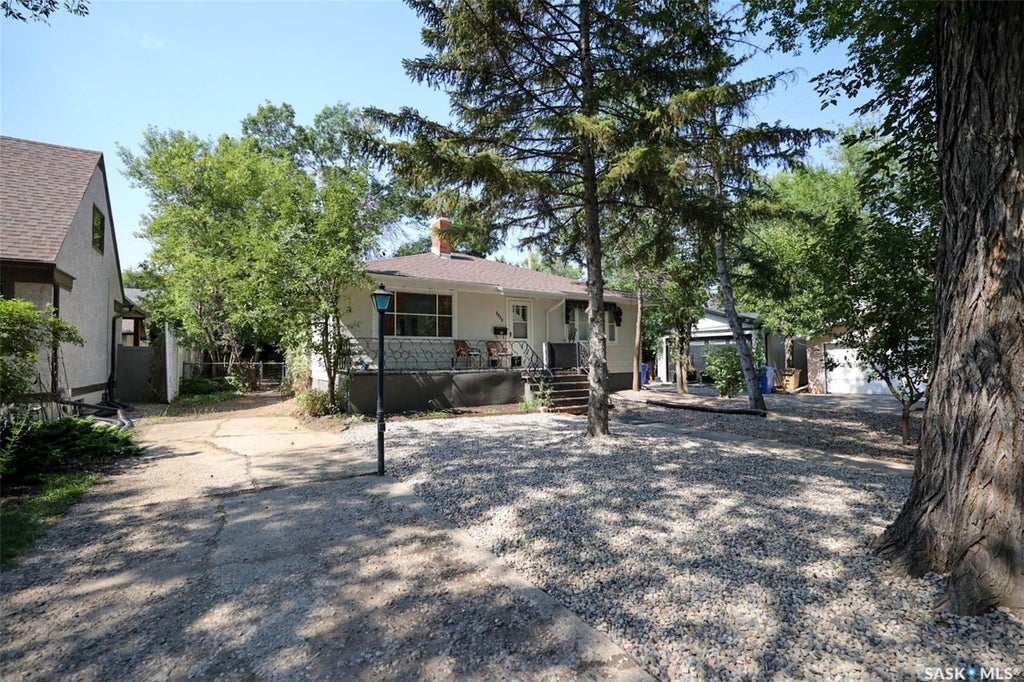 Discover the ideal location of this delightful property, with potential to redevelop with your Dream home. just blocks from Wascana Park, the legislature, and Hill Avenue shopping and amenities. With a generous 50ft by 125ft lot (approximate), enjoy ample space and options for a future garage. The bright open spaces inside welcome you, as the living room flows smoothly into the dining room featuring newer laminate flooring. The charming original kitchen offers a blank slate for your personal touch, while two roomy bedrooms and a 4-piece main bathroom complete the main level. The partially developed, full-height, and dry basement provides additional living space, including a family room with built-in shelving and a bar area, large bedroom, a workshop, 3-piece bathroom, and laundry. The private backyard boasts a log cabin storage shed, numerous fruit trees, bushes, and perennials in a mostly lawn-free yard designed to attract birds and butterflies. This well-maintained home features a boiler replaced in November 2022, shingles and eavestroughs approximately 7 years old, and laminate flooring replaced in 2023.