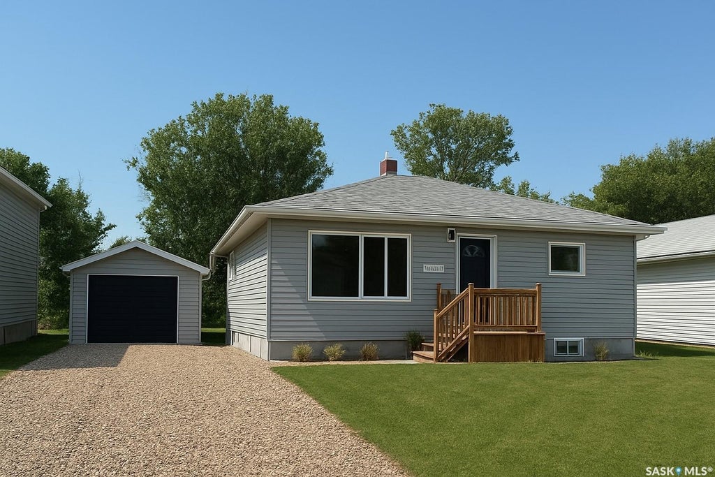 Welcome Home to Midale! This bright and affordable renovated home is move-in ready and full of charm. Featuring 3 bedrooms and 2 bathrooms, the home offers modern updates throughout, including a new kitchen with ample cupboards, counters, and appliances, refreshed flooring, and many updated windows. The finished basement includes a cozy family room, an additional bedroom, a half bath with laundry hookups, and plenty of extra living space. Mechanical upgrades include a high-efficiency furnace, water heater, and central air conditioning, ensuring comfort and peace of mind. Outside, enjoy a large yard with a firepit area, perfect for entertaining and ready for your personal touch. The single detached garage offers excellent storage options. With low-maintenance vinyl siding and thoughtful renovations, this property is as practical as it is inviting. Don’t miss this move-in ready gem in the welcoming community of Midale!
