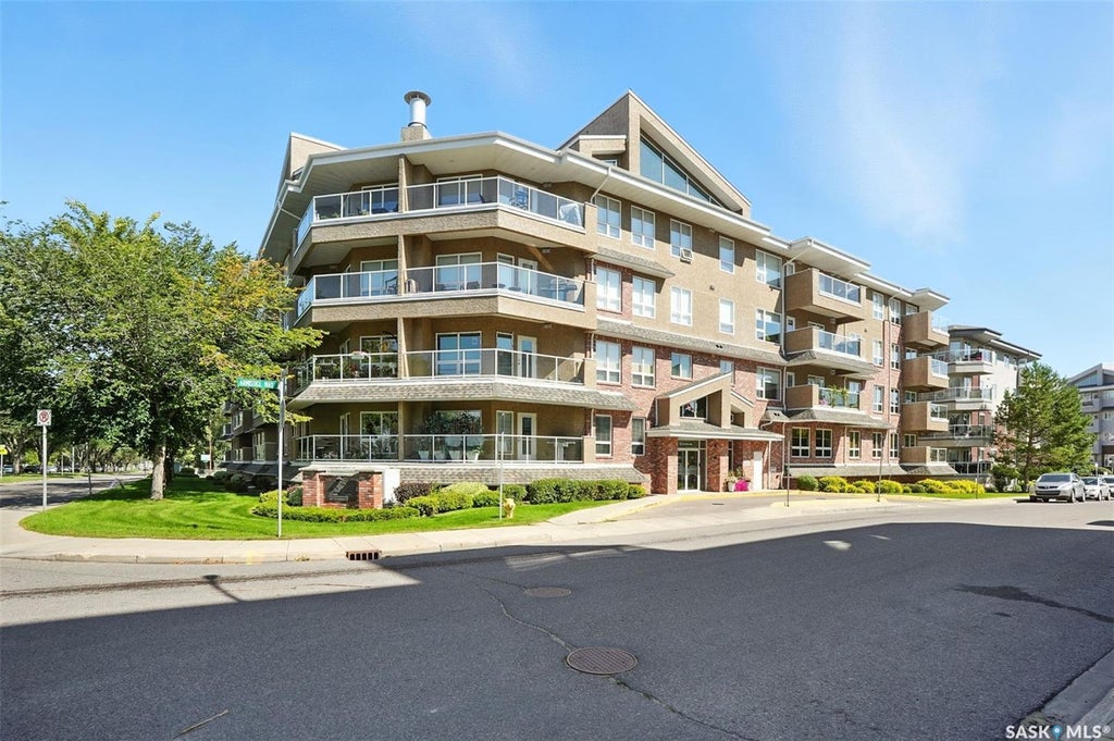 Welcome to Dover Heights in Nutana. This well cared for 1 bedroom 1 bathroom plus HUGE den condo is Steps from the elevator and easily accessed for anyone with mobility issues. Great open concept and bright South/East facing windows and balcony. Large laundry room with full size side by side machines, storage and central vacuum. Tons of kitchen cabinetry, kitchen island, all kitchen appliances, large main bedroom with walk in closet. 4 Piece bath with walk in tub. Custom built in TV wall unit. Gas BBQ hook-up on the balcony. Easily access the heated underground parking #40 with a storage unit (4’ x 8’). Conveniently located just a short stroll to Market Mall, and a short drive to 8th Street & Circle Drive. A fantastic move-in ready opportunity! Price reduced by 14k!! Price includes furniture!