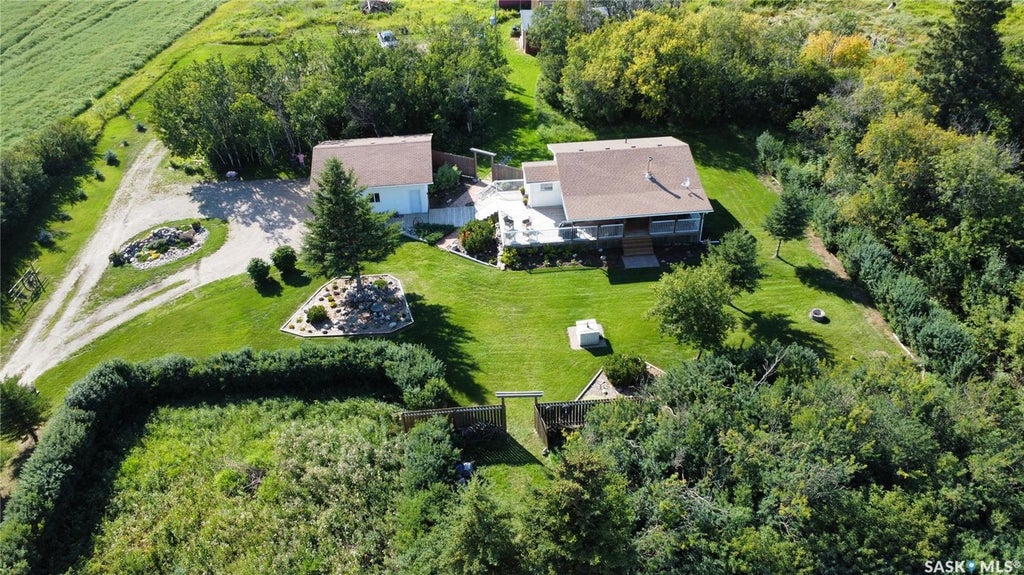 The Meath Park 14 acre retreat is only 30 minutes north east of Prince Albert, Saskatchewan. Featuring hardwood floors from the entry through the kitchen/dining to the living room. Rustic design & Heartland replica cook stove in the kitchen. Extensive landscaping with plants & rock gardens, nestled in the trees, and surrounded by open fields. This could be your home in the country. Two bedrooms & one bath and only one utility bill. The appliances stay - Fridge, Stove, Washer, Dryer, Water Cooler. 2 car 24'x26' detached garage right close to the house. Some additional farm yard buildings featuring a 12x16 garden shed (newer shingles & new door), 20x32 shop, 20x40 rustic log barn (a little tlc and maintenance could extend the life of these buildings for many years to come). The basement (full 8 foot ceiling) is undeveloped and used for storage.