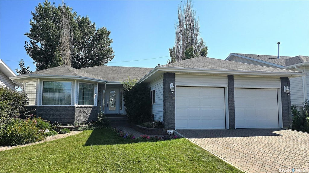 Extra Large 1495 sq. ft. Bungalow backing Open Field in Vanscoy. Custom Built in 1999 (Blueprints available), this spacious home has beautiful Hardwood floors in the Extra Large Living /Dining rooms and Tile Floors in the Kitchen, Nook & Sunroom at the back of the house. Features 3 Bedrooms (1 currently has cabinets built in for work space), 2 Bathrooms (3 pc Ensuite & Walk in Closet off Master bedroom) & Main Floor Laundry with direct entry to Double Attached Garage. Kitchen features Fridge, Gas Cooktop, Built in Stove & Dishwasher. Includes Central Air, Central Vac, Air Exchanger, Gas Fireplace, Triple Pane PVC Windows, Deck & Shed. Shingles were replaced in 2023. Full Basement is Framed & Insulated with lots of Shelved Storage & room to develop. This Solid home has been well cared for over the years. Book a showing with your choice of Real Estate Agent.