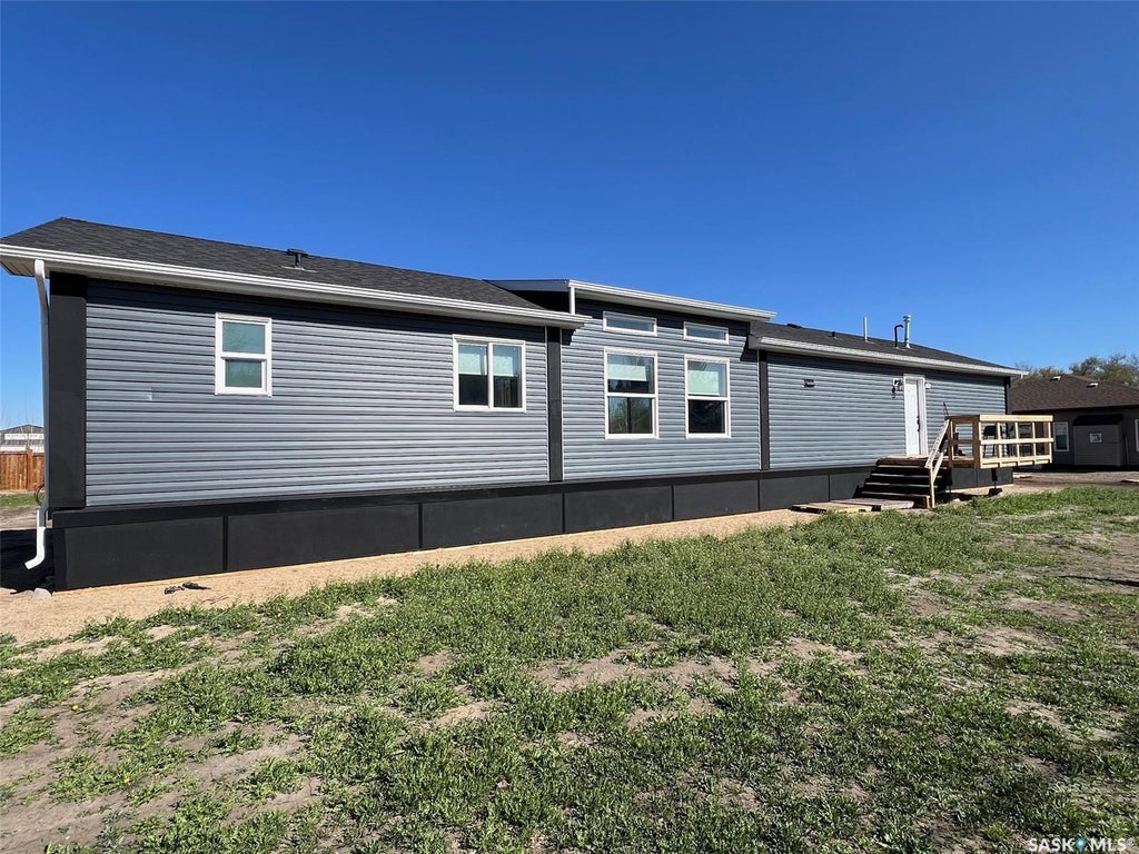 LIVE THE LAKE LIFE STYLE – Welcome to your new home in the charming Village of Meota, just steps from Jackfish Lake! This brand-new 3 bed, 2 bath 1,560 sq. ft. bungalow is your chance to enjoy lake living with modern comfort and space to grow. Situated on a HUGE Double 150’ x 120’ lot, this property is ready for your choice of garage size and style, maybe a pool, Man Cave, or She Shed! Step inside to a bright, open-concept layout, where the kitchen flows beautifully into the dining and living areas—perfect for entertaining. Cozy up to the modern electric fireplace in the spacious living room. The primary suite is a private retreat with a luxurious 5-piece ensuite and tons of storage. On the opposite side, you’ll find two more spacious bedrooms and a stylish 3-piece bathroom with full shower. Tucked behind the kitchen is your mechanical/laundry area—efficient and functional. Outside, the home features insulated, parged skirting over 30” x 30’ treated cribbing on a gravel base. The groundwork for the home is done— Temporary decks are in place, with plans to build permanent ones. There's also a natural gas BBQ hookup ready to go. Enjoy the partially fenced yard and imagine the summer nights ahead. Enjoy all Meota has to offer: golf, snowmobile trails, beach life, and year-round fun. Whether you're looking for a family home or a year-round getaway, this one is move-in ready and full of potential. Over $38,000 already invested in town levies and hookups, including water, sewer, electrical, and mechanical!