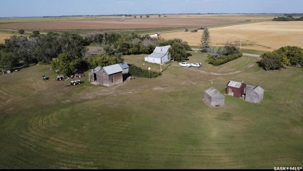 Properties like this one don't come around very often, situated on just over 7 acres, literally minutes from the Town of Outlook. The 1904 character home boasts 4 bedroom upstairs as well as a half bath, a massive kitchen/dining room/butlers panty layout, 4pc bath/laundry on main floor and 2 staircases to access the upper floor! Filled with charm and detail, this property showcases all the original doors, trim and staircase, telling a story around each corner! Step outside to a massive garden area that boasts a well established asparagus patch with irrigation water, for those who love gardening and farm-to-table living. Numerous outbuildings and a heated workshop for endless possibilities with storage, hobbies or small-scale farming. Or go a different direction and build your dream home a stones throw from town limits with the privacy of acreage living! Don't hesitate on this one! Call Today!