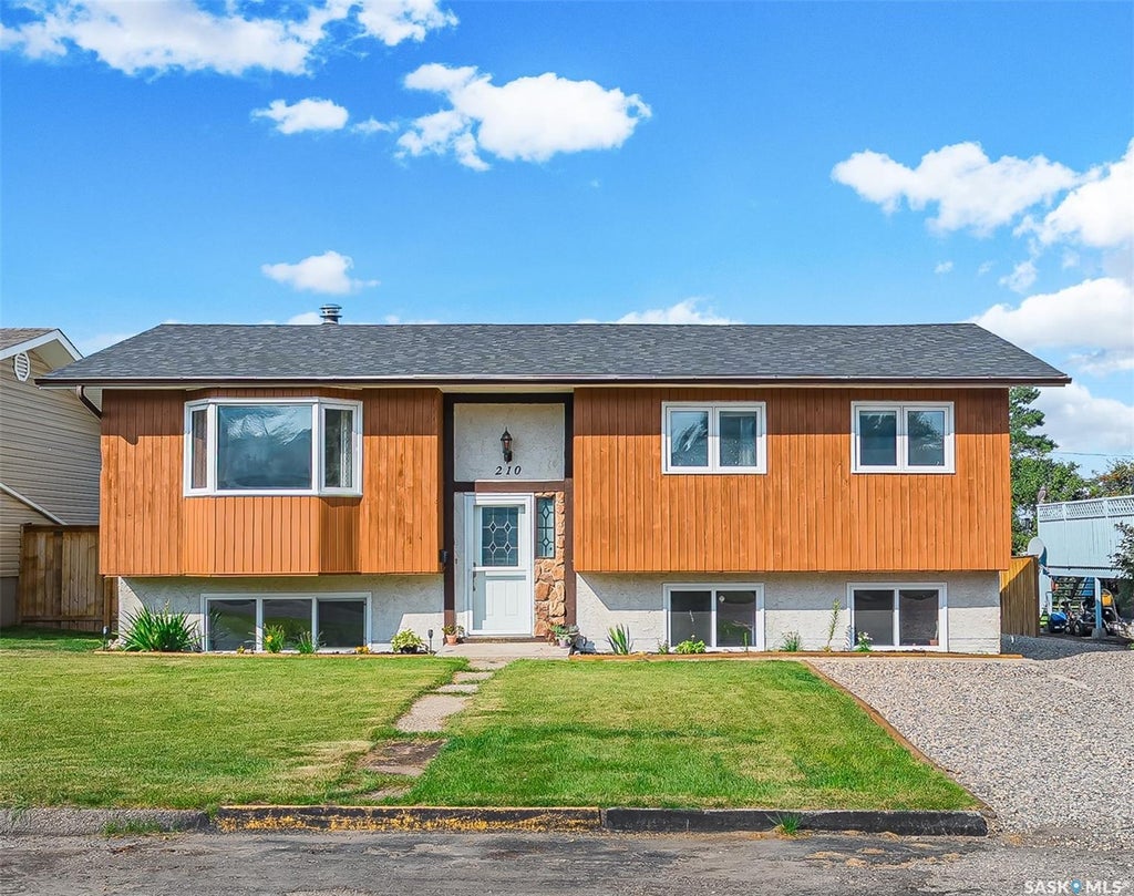 Welcome to 214 4th St. W. in Delisle, a fantastic property on a quiet street right next to a park. This bi-level home is situated on a large, fully fenced lot of over 7,000 sq. ft. and includes a dream 40’ x 20’ heated and insulated garage, perfect for mechanics, projects, storage, or a private retreat. When entering the home your welcomed by a spacious entry way, the main floor offers two bedrooms, including a spacious primary suite with its own en suite that was previously two bedrooms combined into one luxurious bedroom with closet area. A beautifully updated 4 piece bathroom, bright kitchen and dining area with patio doors leading to a large two-tiered deck, and a living room with oversized windows that fill the space with natural light and cozy wood-burning fireplace adds warmth and character to the main living space. All-new vinyl plank flooring runs throughout the main floor. The lower level is designed for flexibility and entertainment, with a massive bedroom featuring large windows, a bonus room currently used as a gym with a half bath, and a family room complete with a wet bar and kitchen setup. A separate entry, mudroom area, laundry, and storage provide additional convenience. The outdoor space is just as impressive, with a brand-new fence, mature trees, a firepit area, and plenty of open space backing onto greenspace. Upgrades include: Shingles, upstairs bathrooms, entryway, banister, water heater, paint, natural gas in garage, doors, flooring and baseboards throughout upstairs. This property truly combines space, comfort, and endless potential both indoors and out. You wont want to miss out on this affordable home in Delisle call a Realtor ® today for your private viewing.