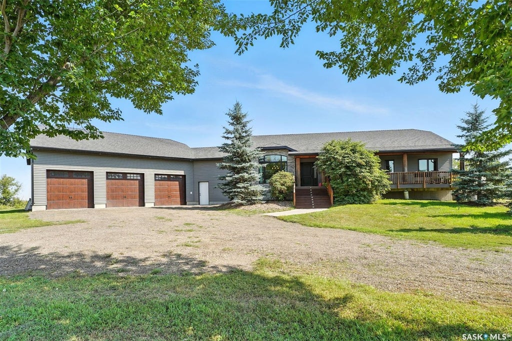 Just south of Vanscoy, and only a short drive from the city, this stunning 2,514 sq. ft. custom home sits on 8.86 acres in a beautifully mature yardsite. Designed with ease of living in mind, it combines rural tranquility with modern luxury—perfect for those looking take a break from the city without sacrificing comfort and quality.