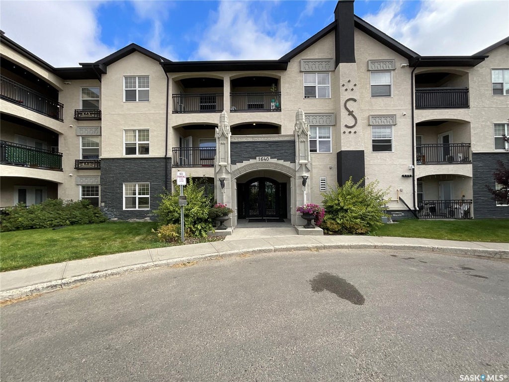 Stylish Main-Floor Condo with Exceptional Amenities! Welcome to this bright inside-corner unit offering the perfect blend of modern style and everyday comfort. The open-concept main floor features engineered hardwood floors throughout the kitchen and living area, creating a seamless, contemporary feel. The modern kitchen boasts sleek quartz countertops and plenty of workspace for all your culinary needs. This unit offers two generously sized bedrooms and a 4-piece bathroom, along with in-suite laundry and ample storage space for added convenience. Step outside onto the oversized, shaded patio — perfect for summer lounging or entertaining friends. Enjoy the perks of two parking stalls and access to a well-appointed clubhouse complete with an exercise room and indoor pool. Located in a sought-after Regina community, this condo is the ideal combination of style, comfort, and amenities — ready for you to move in and enjoy!