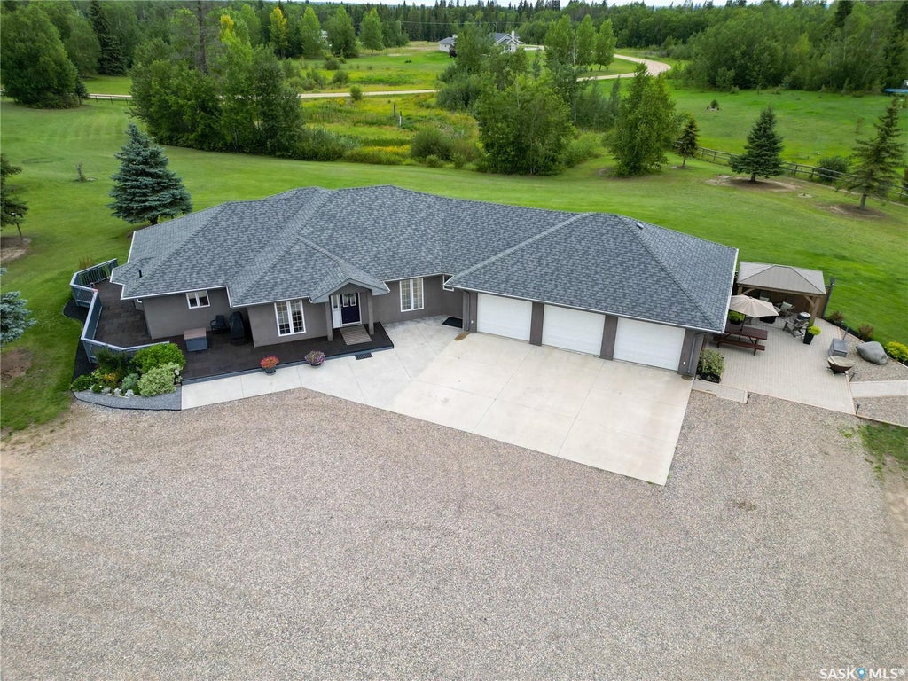 This 5.34 acerage in Christopher Lake is exactly what you've been looking for! It has breathtaking views of the surrounding white and Colorado blue spruce, flower gardens, vegetable garden and the expansive lawn. Enjoy watching wildlife on one of the 3 recycled tire decks surrounding the house. Relax or host guests in the 10 x 12 private gazebo, sheltered from wind and sun, on the 18½ x 32-foot paving stone patio. The fenced in raised bed vegetable garden can keep you enjoying the outdoors while supplementing your grocery bill. There is a heated 32’ x 42’ shop with large overhead door and expansive shelving to work on your favourite hobby or store your recreational toys that you enjoy and use while living very close to Christopher, Emma and Anglin lakes. The property includes a heated, attached two-car garage with an epoxy floor measuring 34½’ x 30'. The 1892 sq ft open-concept home features 10’ ceilings in the main living area, a floor-to-ceiling rock fireplace, and large windows for ample light and country views. The kitchen has been updated with all new appliances, counter tops, subway tile and flooring. The master bedroom features a walk-in closet and a 3-piece steam shower ensuite. This home has 3 bedrooms and 2 full baths. Well and septic field – no hauling water or septic. If you are retired and want a quiet retreat for hobbies and relaxation close to lake recreation and yet not too far from the city, this property is a must see. If you have a small family and want to raise your children in a community with caring neighbours and friends, this could very well be your dream home, or if you just want to enjoy country living – this property delivers. Please make an appointment to view.