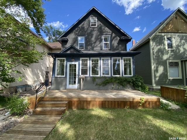 Location! Location! Location! This Nutana area residence presents a distinctive two and a half-story architectural design. The versatile third level is adaptable for use as a bedroom, den, or loft space. Constructed in 1912, the property harmonizes classic aesthetics with contemporary conveniences, including main-floor laundry facilities and an efficient hot water heating system. The basement area is partially finished, and the property features an attractively landscaped yard. Its advantageous location provides convenient pedestrian access to the Broadway commercial area, and the property is competitively positioned in the market.