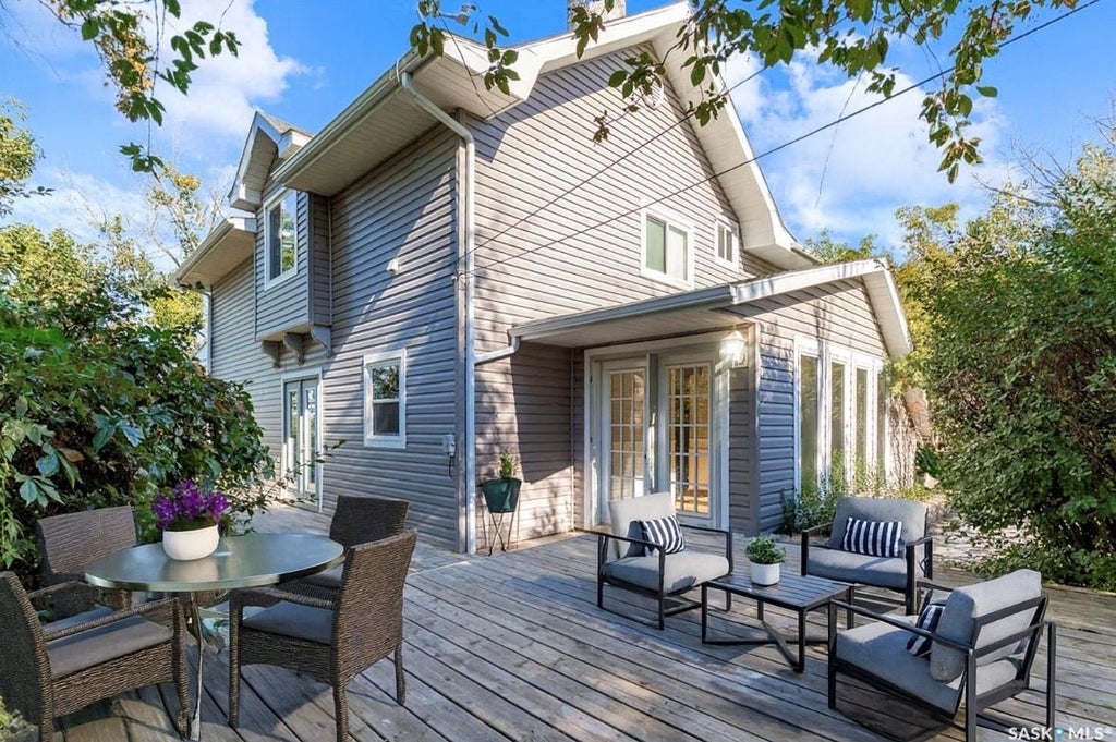 A Piece of Paradise in a Great Location! Furnished photos are virtually staged. Discover this stunning character home, offering approx. 2,600 sq. ft. of living space, nestled among a diverse array of trees that provide shade, privacy, vibrant color, and an acreage feel, all while enjoying the conveniences of town amenities. Lot Size: 125 ft. x 120 ft. Outdoor Features: Multiple deck, patio, and seating options; an east-facing patio for morning sunlight, and a west-facing deck perfect for relaxing in the warmth of the setting sun. This yard is private and sheltered, ensuring maximum enjoyment.