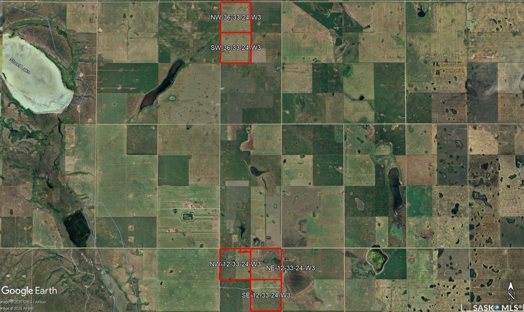 Block 2 (SE 12-33-24 W3, NE 12-33-24 W3, NW 12-33-24 W3): 480 acres with 433 cultivated acres, clay soils, Crop Insurance “J” and “H,” $7,495 annual lease revenue, plus yardsite with 40x60 quonset and 2 grain bins (2 addiitonal bins are excluded from the sale and will be removed).