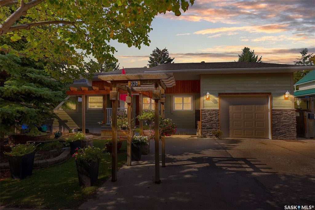 Welcome to 730 James St N! Nestled in the vibrant community of Lumsden, this home offers the charm of small-town living while being just 15 minutes from all the conveniences of the city. With over 1,800 sq ft of thoughtfully designed living space and countless updates throughout, this property is move-in ready. The heart of the home is its open-concept family, dining, and kitchen area—perfect for entertaining or everyday living. The seller has even pre-planned for future expansion with an LVL beam already in place should you wish to extend the west wall. The kitchen is a true showpiece, featuring a stunning 300-year-old cedar wood island top, beautifully restored and serving as the focal point of the space. With abundant cabinetry, expansive counterspace, a walk-in pantry, and room for two fridges or freezers, this kitchen is a chef’s dream. Down the hall, you’ll find a practical mudroom, four generously sized bedrooms with fresh flooring and paint, and two stylishly updated bathrooms. Highlights include a custom tile shower, a deep soaker tub, and modern vanities. A large laundry/storage room completes this well designed space, and direct access to the insulated single attached garage add to the convenience. The basement provides additional potential, offering a spacious unfinished area ready for your personal touch. Outdoors, the nearly 1/3-acre yard is a private retreat. Mature trees, stone patios, custom pergolas, rock gardens, and xeriscaping create a low-maintenance yet beautiful space to relax or entertain. For hobbyists or entrepreneurs, the fully insulated and heated workshop off the back alley is a standout feature, providing year-round workspace. All tools and wood supplies are negotiable. This home is truly the best of both worlds—small-town charm, city proximity, and a property brimming with opportunity. Value added items include: PVC windows, shingles Sept 2025, all 6 appliances, central air, garburator, 3 electrical panels, and more!