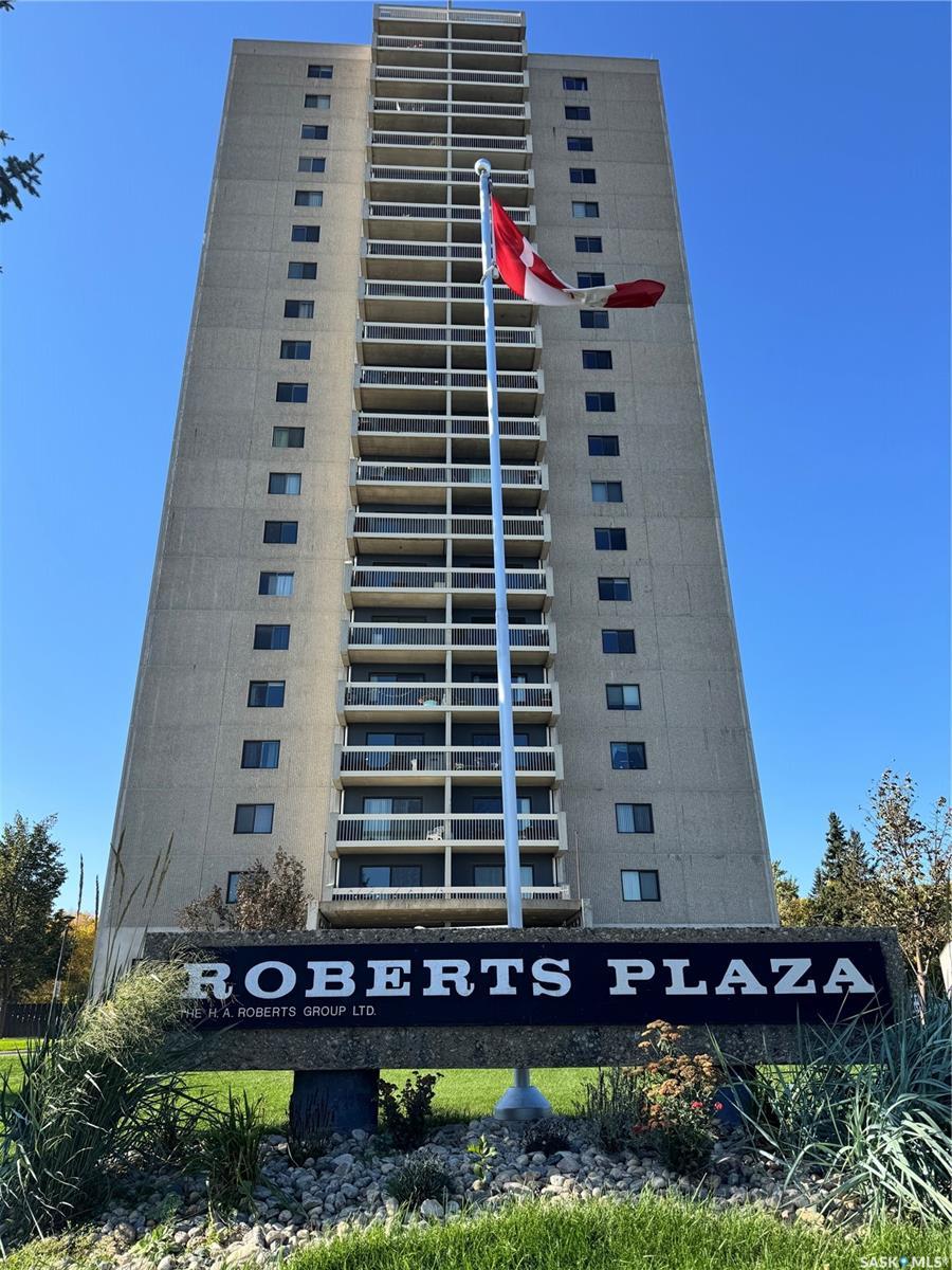Beautiful 18th-Floor Condo with Panoramic Sunset Views Welcome to this rare opportunity to own a 969 sq. ft. two-bedroom, two-bath condo perched high on the 18th floor of the Iconic Roberts Plaza, with stunning Southwest views of the city skyline and unforgettable sunsets. This solid, full-concrete building offers exceptional soundproofing with concrete construction between floors—providing peace and quiet in the heart of the city. Inside, you’ll appreciate the updated kitchen with an abundance of cabinetry, making meal prep and storage a breeze. The spacious floor plan includes in-unit storage and two generously sized bedrooms. The primary bedroom features a full bank of closets along one wall, ensuring ample space for all your wardrobe needs. The building offers top notch amenities, including: * Heated underground parking * Indoor pool and hot tub * Brand new sauna * Recently refurbished weight room *Indoor Racquetball and Squash Court * Short-term rental guest suite for visitors *Indoor bike storage. * 2 Newly installed Elevators. Adding to the appeal, the condo fees are all-inclusive, covering energy, power, water, and sewer—making this home not only comfortable but also a smart investment. If you’re looking for convenience, incredible views, and unmatched value in a quiet, well-maintained concrete building, this condo is a must-see Fantastic location with a short walk to Connexus Art Center, the University, and directly across the street from Wascana Park.