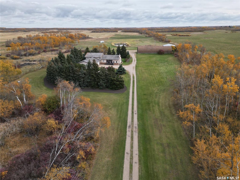 Peaceful acreage living with city amenities just a short drive away - you’ll find the best of both worlds with this spacious three level split set on 17.99 well treed acres. Beautiful hardwood floors welcome you as you step into the foyer that opens to a large kitchen and living room. The kitchen offers ample oak cabinetry, tiled backsplash and a double sink that overlooks the private yard. The dining room, with a garden door that leads to a generously sized deck, overlooks the sunken living room that features a gas fireplace. The main floor is completed with an office and a convenient four piece bath. Upstairs are four bedrooms, a laundry room and a four piece bath with the primary bedroom having a four piece ensuite. The fully developed basement has a spacious recreation room, den, storage and utility rooms. There is direct access from the basement to the oversized triple car garage. A large quonset, barn, watering bowls and a dugout make this the perfect yard for raising animals. This acreage is an ideal location for families with bus service to both elementary and high schools in Balgonie, less than 15 km away. Don’t let this opportunity pass you by!