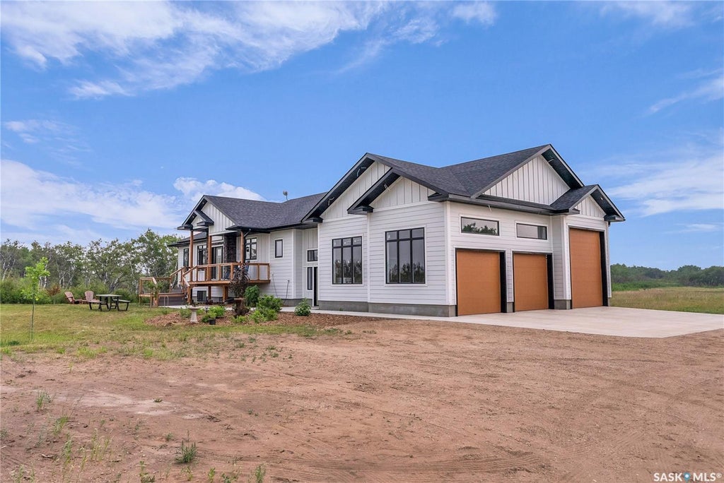 Rare opportunity with this beautiful acreage just minutes south from Saskatoon situated on 69.54 acre’s & located just off Merrill school road right beside Merrill school! This peaceful paradise offers the privacy & tranquility of country living, just 7 minutes to circle drive in Saskatoon, close proximity to the popular Berry Barn, a community center, a rink, a heated ice shack in the winter as well as school bus pickup right at the property to many schools in Saskatoon. This one of a kind 1832 sq.ft raised bungalow, Energy Star Certified home features a triple attached garage & shop! The attached shop has a 12 ft. overhead door with 14 ft ceilings, in floor draining, room for 4 vehicles & a future vehicle lift! The exterior of the home has Hardy plank siding, an 8x22 front deck as well as a concrete walkway/patio area. The home features triple pane windows, insulated concrete floors in the garage & basement, an ICF foundation, 14 inch walls, R50 insulation in the attic & energy efficient utility bills. The main floor is inviting with 11” ceilings, vinyl plank flooring & a stunning kitchen that is open to the dining/living area! The kitchen features a large island, quartz countertops, tile backsplash, black stainless steel appliances, a hood fan that vents directly outside & a butler’s pantry with sink built in. The Great room has a beautiful gas fireplace with brick surround. There is a commercial grade water heater & reverse osmosis system as well as a rough in for a future wet bar. All services were newly set up in 2022; (1000 Gal Septic tank, Septic field, Well - 50 feet & 40 gal per min). The current zoning of the property allows for a large detached shop or Quonset, & this perfect family acreage comes complete with a firepit, a water softener, central air conditioning, central vacuum, natural gas bbq hookup, all appliances & many Saskatoon berry bushes. Subdivision is a possibility in the future & any remaining SK New Home warranty can be transferrable.