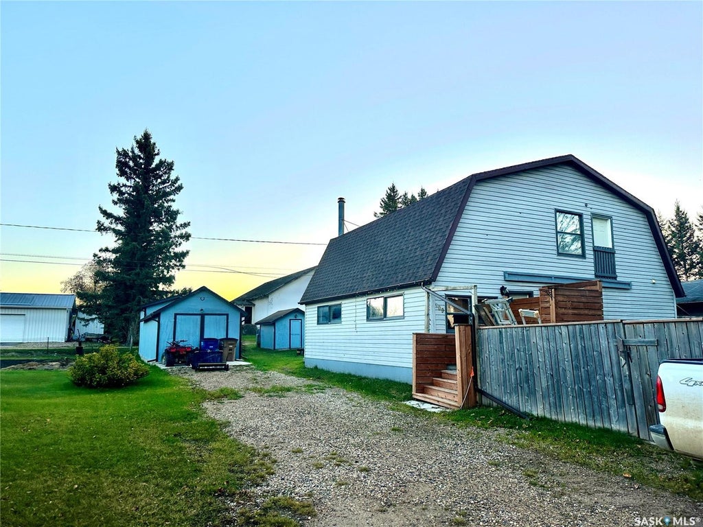 Beautiful 1530 sqft 4 bedroom, 2 bathroom home sits on a large private lot in a quiet area of Big River. The home also has two large sheds and a large work shop/garage. The home offers one bedroom, bathroom and laundry on the main level, and 3 more bedrooms, storage room and bathroom on the second level. Half of the yard in fenced, while the other half has two raised garden beds, 2 sheds, and haskap bushes.