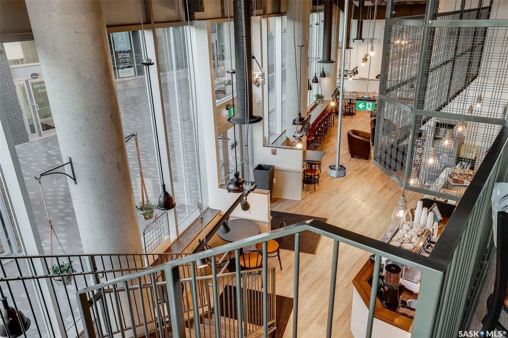 Home Quarter Coffeehouse & Bakery is a beloved space to grab a coffee and delicious baking, however they also offer many other options ie: breakfast foods. This popular business is located within The Banks condominiums on the corner of 19th Street and Avenue B, sharing a courtyard with other prominent businesses, conveniently below over 100 residences that love supporting the business, and across from Gather Local market. This concrete space has 18' ceilings, a steel mezzanine for extra seating, and beautiful windows spanning the length of the space creating a bright and airy space to enjoy all year around. Plenty of seating, and a gas fireplace give you a place to cozy up during cold winter days. Being only 1 block from the River Landing trails, and quick access to downtown by foot or bike, this is definitely a lifestyle location that is reminiscent of Vancouver & Victoria BC. Future upside potential value is strong as Riversdale continues to improve year over year.